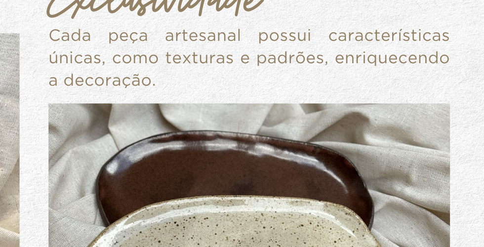▶ Exclusividade: Cada peça artesanal possui características únicas, como texturas e padrões, enriquecendo a decoração.
